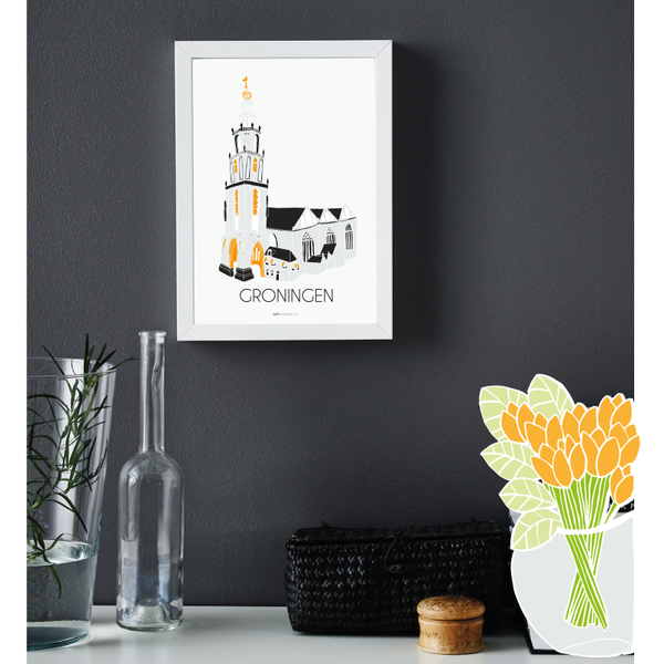 Poster Groningen, afgedrukt op mooi stevig papier, formaat 21 x 30 cm.
